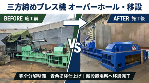 「老朽化した油圧プレス機が新品同様に!三方締めプレス機の完全オーバーホール&移設プロジェクト